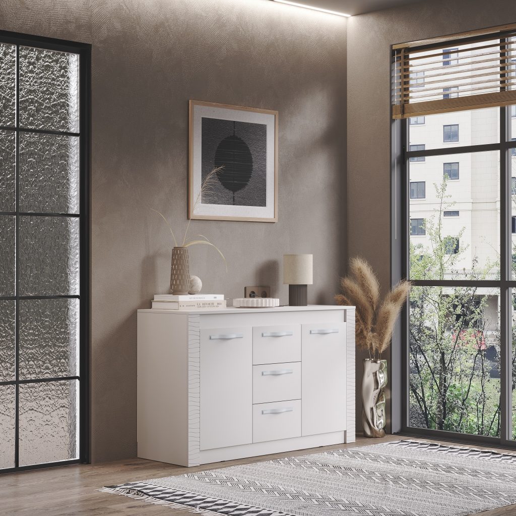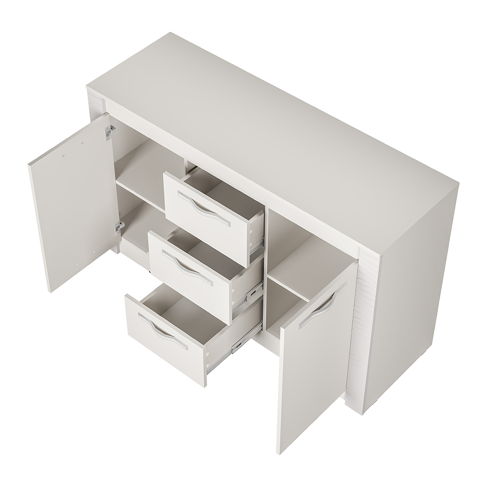 Вместительный комод "Монако" выполнен в сдержанном и элегантном стиле, как и все модели из одноименной мебельной коллекции. Изделие изготовлено в светлом цвете белого ясеня из качественной ЛДСП и имеет декоративные вставки из МДФ. Расположить все необходимые вещи можно в трех выдвижных ящиках либо на полках за распашными створками.