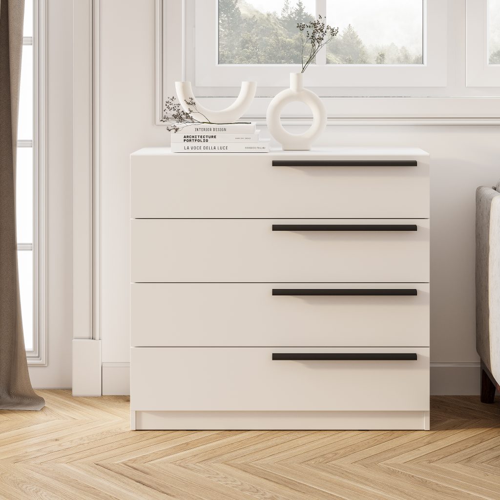 Комод «Стандарт № 4» – очень практичное решение для вашего интерьера. Он вместит в себя большое количество предметов и вещей. Модель состоит из трех секций: верхнего выдвижного ящика, левой части с распашной дверцей и нижней секции также с распашными дверцами и спрятанными за ними полками.