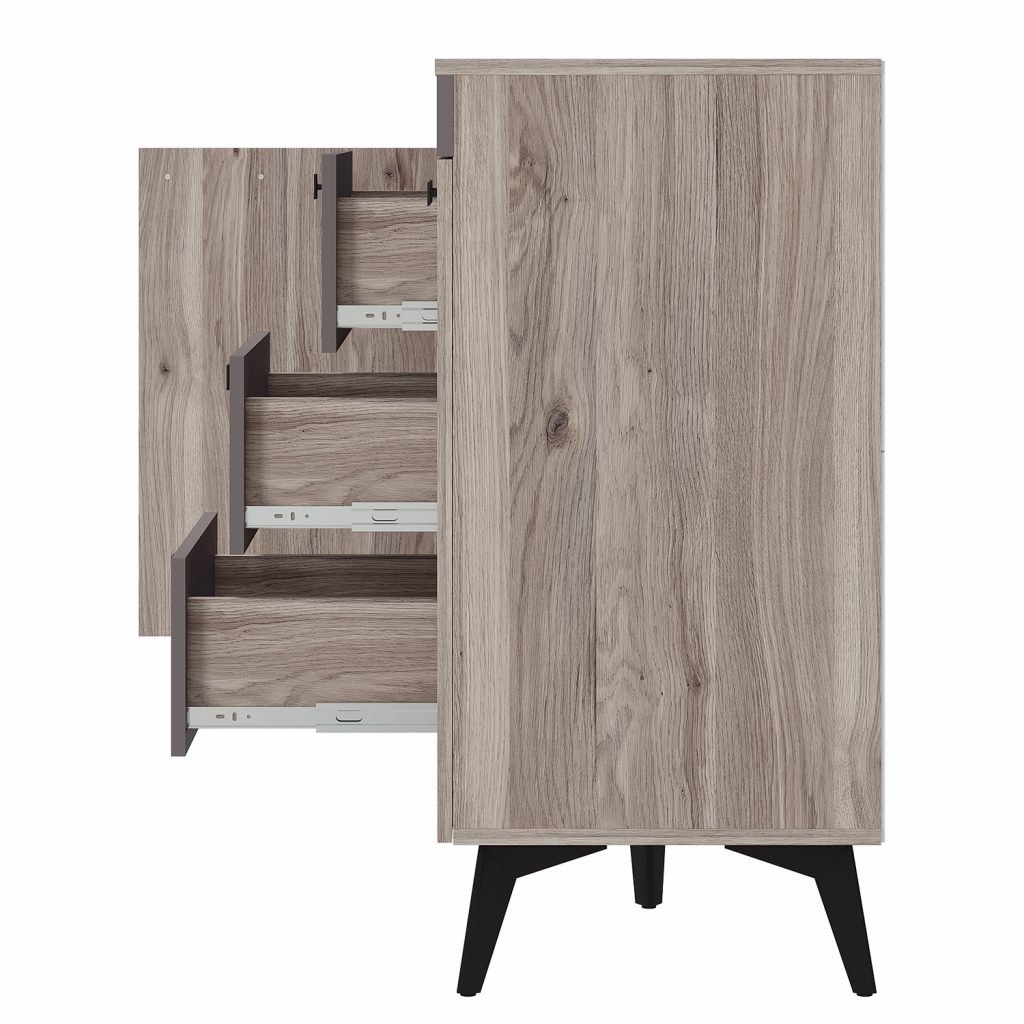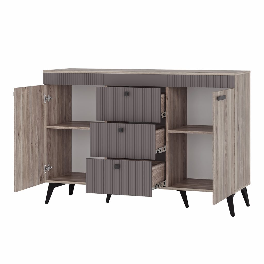 "Твист" - это стильное решение в трендовой цветовой гамме, которое идеально дополнит современные интерьеры в стиле "лофт" и "неоклассика". Компактные модули оснащены всеми необходимыми зонами хранения. Матовое покрытие - не только эстетичная, но и практичная деталь, на которой незаметны отпечатки. Геометрическая конструкция модели подойдет для разных пространств. Комод будет одинаково органично смотреться в гостиной, прихожей и спальне. В качестве альтернативы лицевой фурнитуре на фасадах сделаны эргономичные интегрированные срезы.