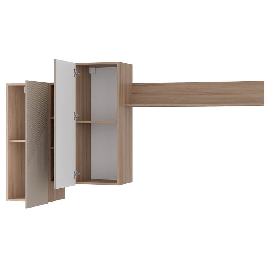Навесной шкаф «Эмилия» (ШКН-03) – изящная модель с нестандартным дизайном. Ящики шкафа спрятаны за тремя дверцами: одна из них – откидная, еще две – распашные. Здесь удобно хранить самые важные документы, канцелярские принадлежности и другие важные мелочи. На верхней части шкафа также поместятся красивые элементы декора или домашние растения.