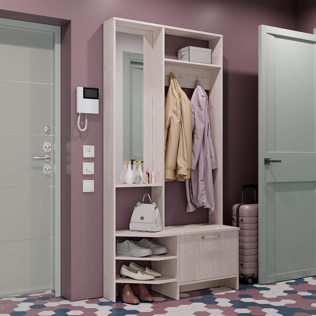 Компактная прихожая "Тео" – готовое решение для современной малогабаритной прихожей. Здесь есть все составляющие – зеркало с полкой для разных полезных мелочей, верхняя полка для головных уборов, просторная зона с крючками для верхней одежды, нижние открытые и закрытые полки, в которых можно хранить сезонную обувь.