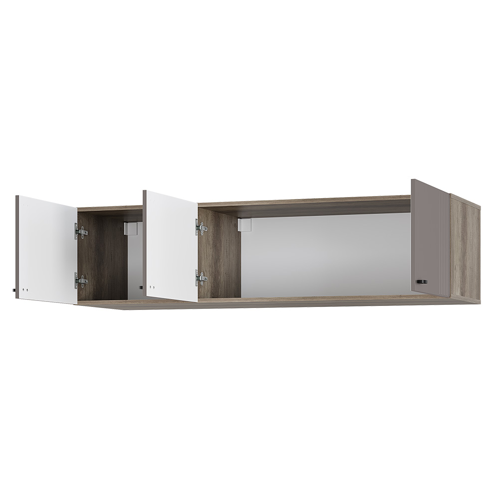 Шкаф навесной ШКН-03 можно использовать как антресоль к 3-х створчатым шкафам Олива ШК-08, как подвесную полку или как напольную тумбу. Элегантная фрезеровка – продолжение индивидуальности коллекции. Простая и функциональная конструкция.