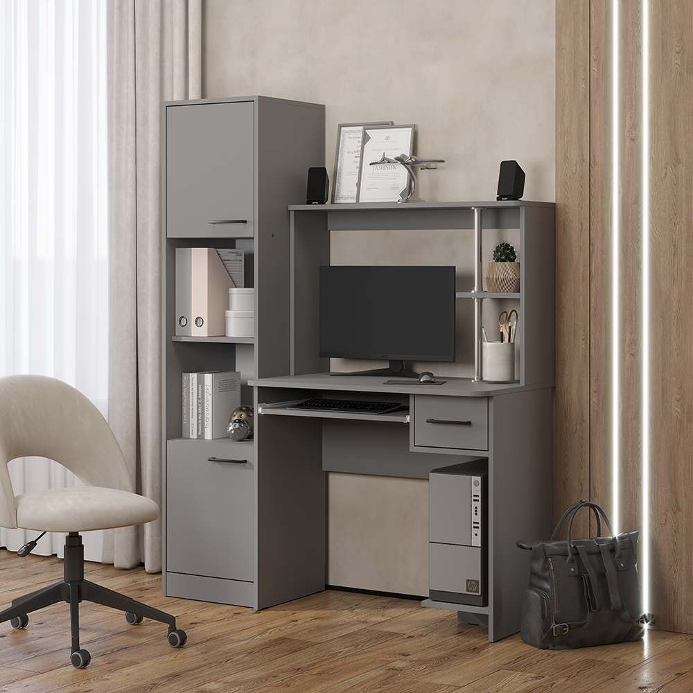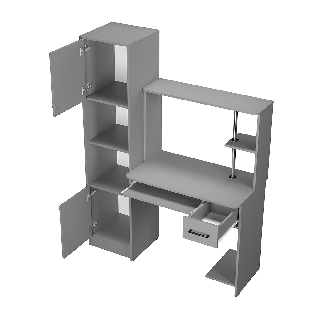 Модель компьютерного стола "Дебют" имеет все необходимые элементы для размещения стационарного компьютера: вместительную столешницу, отделение для процессора и выкатывающуюся полку для клавиатуры. Дополнительно стол оснащен пеналом с дверцей, несколькими открытыми зонами и выдвижным ящиком для хранения необходимых в работе вещей. Толщина кромка - 0,45 мм. Ручка - пластик черная 128 мм. Петли створок - 4х шарнирные вкладные. Опоры - подпятник. Направляющие - роликовые. Максимальная нагрузка на полку/ящик - 5 кг (стол). Максимальная нагрузка на полку/вязку (пенал) - 10 кг. Вес стола с упаковкой - 48,8 кг.